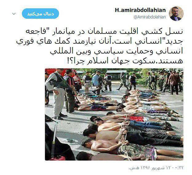 توئیت امیرعبداللهیان درخصوص نسلکشی مسلمانان روهینگیا در میانمار