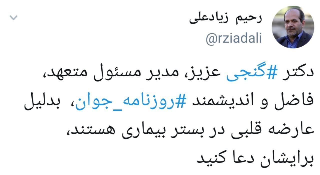 مدیرمسئول روزنامه جوان در بیمارستان بستری شد