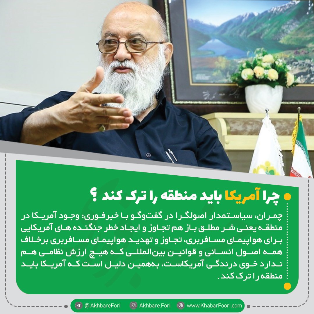 مهدی چمران، سیاستمدار اصولگرا در گفتوگو با خبر فوری گفت: باز هم تجاوز و ایجاد خطر جنگندههای آمریکایی برای هواپیمای مسافربری، تجاوز و تهدید هواپیمای مسافربری برخلاف همه اصول انسانی و قوانین بین المللی که هیچ ارزش نظامی هم ندارد، خوی درندگی آمریکاست.