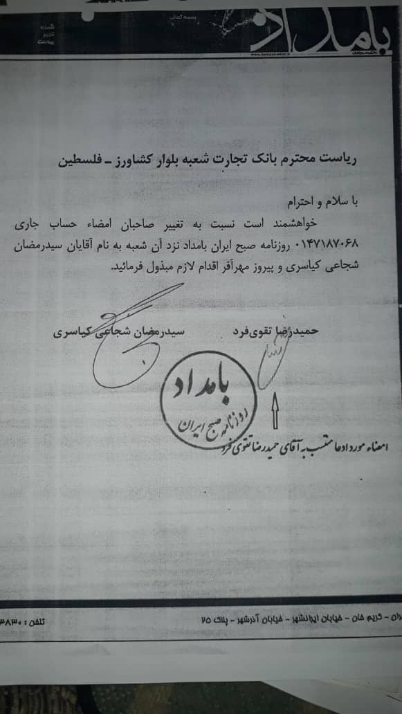 نامه به رئیس شعبهی بانک دربارهی تغییر