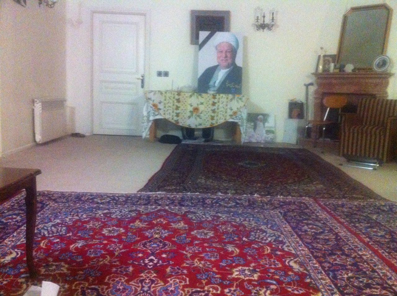 این تصویر، نمایی از اتاق آیت الله هاشمی رفسنجانی را نشان می دهد در شبی که به جای آیت الله، تصویر او در این اتاق قرار گرفته است.