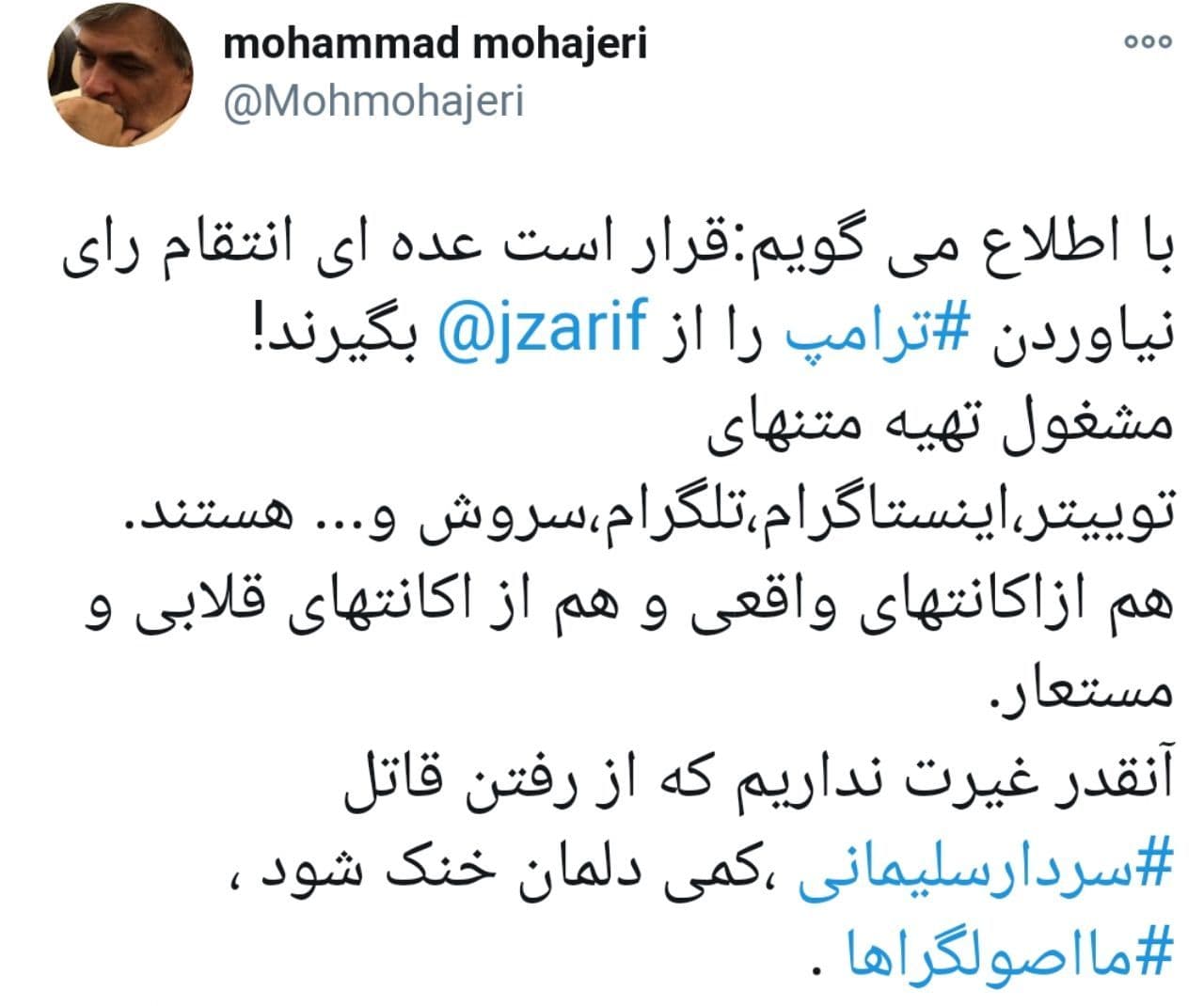 مهاجری: میخواهند انتقام رای نیاوردن ترامپ را از ظریف بگیرند