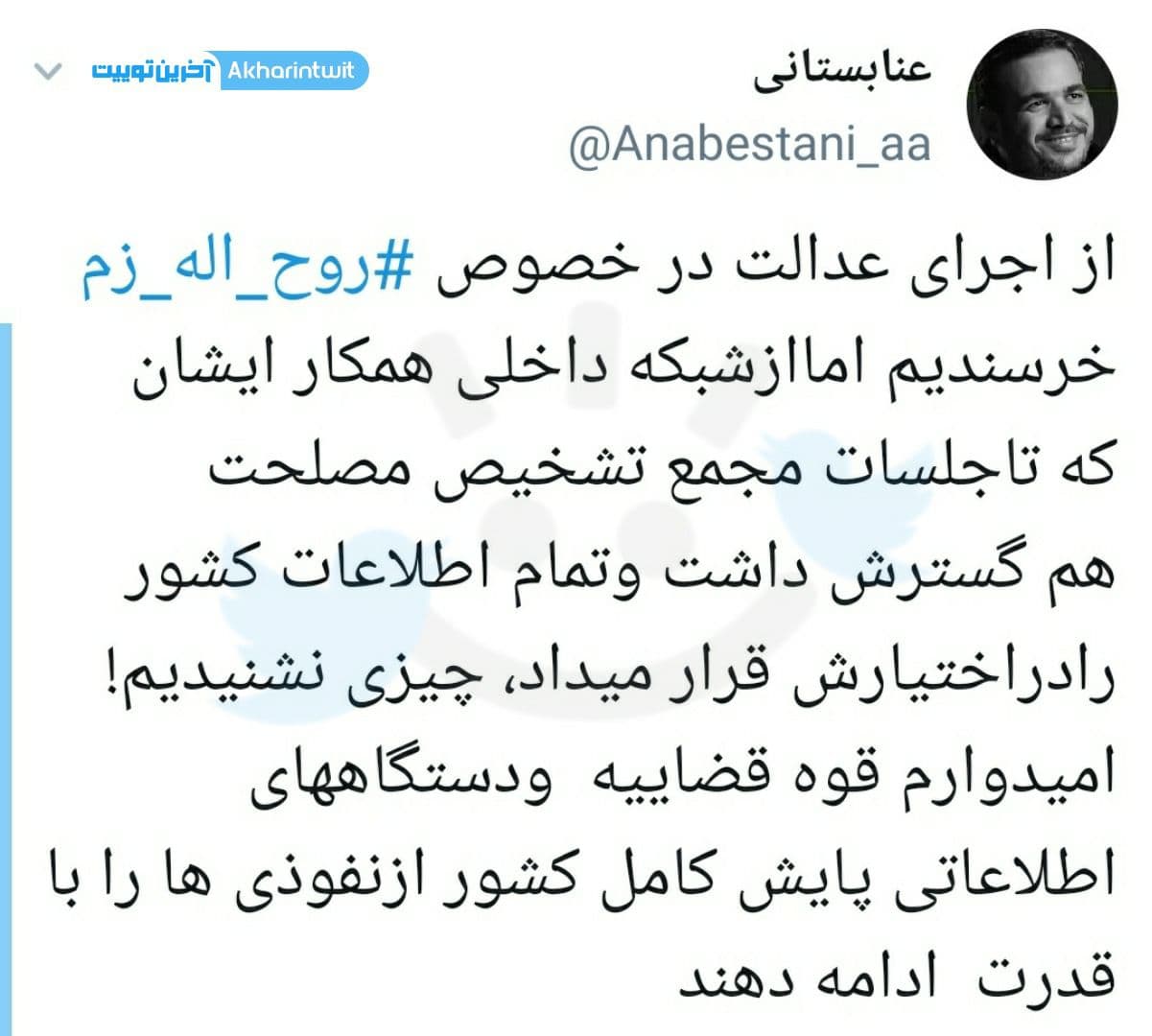 علیاصغر عنابستانی نماینده اصولگرای مجلس در مورد اعدام رح الله زم توییتی زد و گفت که باید شبکه داخلی مرتبط با زم نیز پیدا شود.