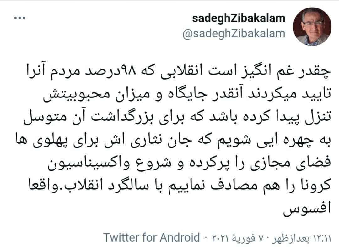صادق زیباکلام، استاد علوم سیاسی دانشگاه درباره همزمانی واکسیناسیون و سالگرد پیروزی انقلاب اسلامی توئیتی منتشر کرد.