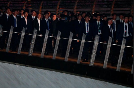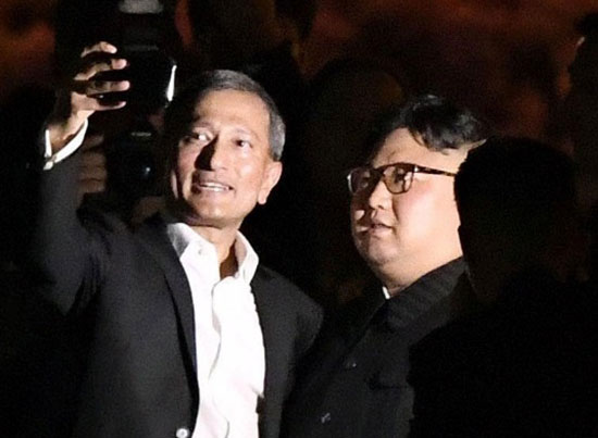 وزیر خارجه سنگاپور در این پیاده روی همراه کیم جونگ اون بود. وی تصویری از خود و کیم جونگ اون را روی فیسبوک منتشر کرد. کیم به همراه خواهرش کیم یو جونگ و دیگر مقامات ارشد کرهای در این بازدید و پیادهروی شبانه حضور داشت.