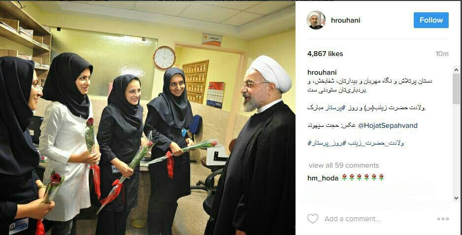به گزارش خبرآنلاین حسن روحانی در صفحه شخصی خود در اینستاگرام ولادت حضرت زینب(س) و روز پرستار را تبریک گفت.