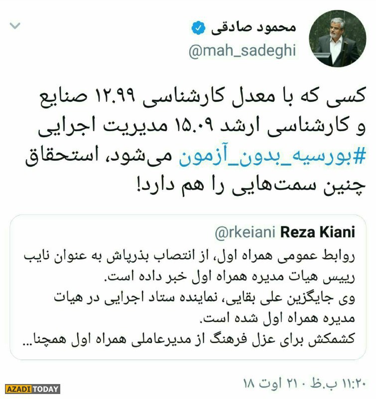 خبرفوری سیاسی سیاست داخلی ۳۱ مرداد ۱۳۹۷ ۲۳:۴۸ حمله محمودصادقی به بذرپاش محمود صادقی نماینده مجلس تهران در توییتر خود به مهرداد بذرپاش انتقاد کرد. کپی شد کدخبر: 543024 ت ت 728 محمود صادقی مهرداد بذرپاش کپی شد با دوستان خود به اشتراک بگذارید: