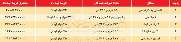 به هر حال آنچه در این بین بهنظر میرسد، رفتار غیرعرفی سنجش در برخورد با ثبتنام دورههای بدون آزمون خواهد بود، البته این هزینه قطعا در دورههای پذیرش مهرماه 98 نیز با تغییراتی همراه میشود. باید دید چرا سنجش در حالی که داوطلبان را به ثبت نام مستقیم الزام کرده است در عین حال هزینه ثبت نام را به خود دانشگاهها واگذار نمیکند. حساب وکتاب ما نشان میدهد در آمد سازمان سنجش از برگزاری 5 آزمون بزرگ در سال 98 حدود 98 میلیارد تومان است.