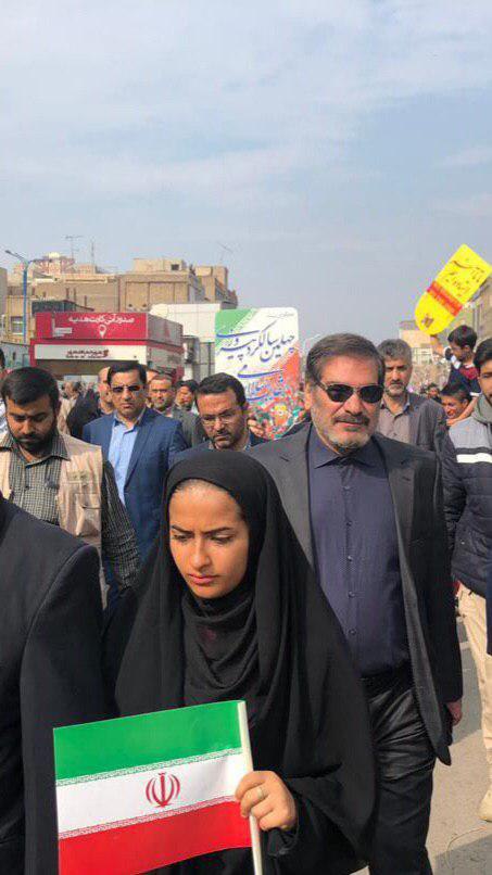 *دریابان علی شمخانی دبیرشورای عالی امنیت ملی در جمع راهپیمایان ۲۲ بهمن ماه در اهواز