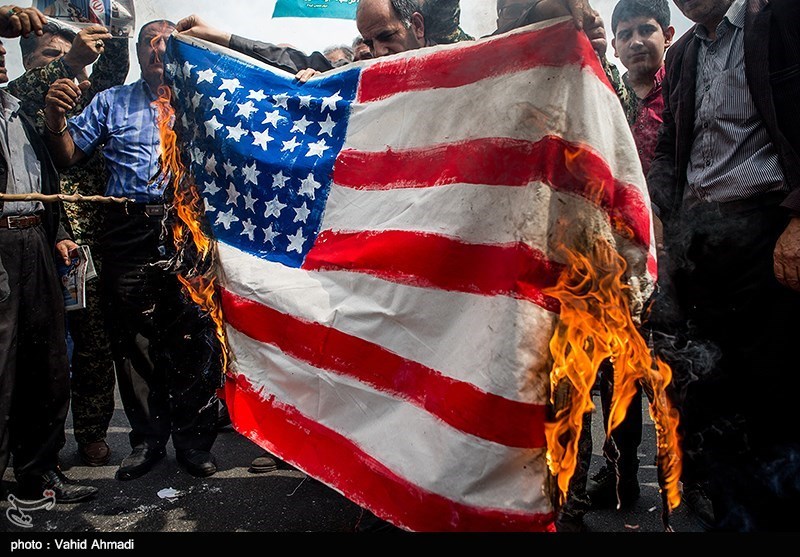 آتش کشیدن پرچم آمریکا توسط راهپیمایان تهرانی