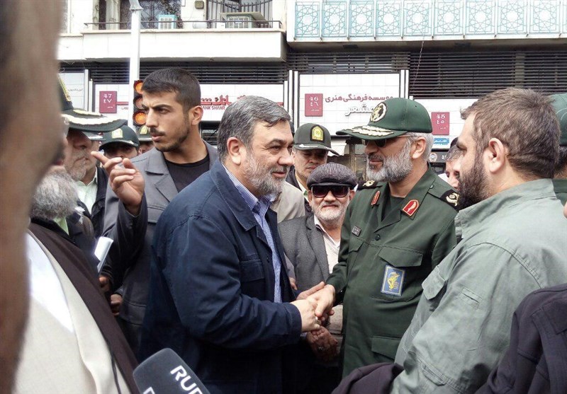 حضور رئیس شورای هماهنگی تبلیغات اسلامی استان تهران با لباس پاسداری در راهپیمایی