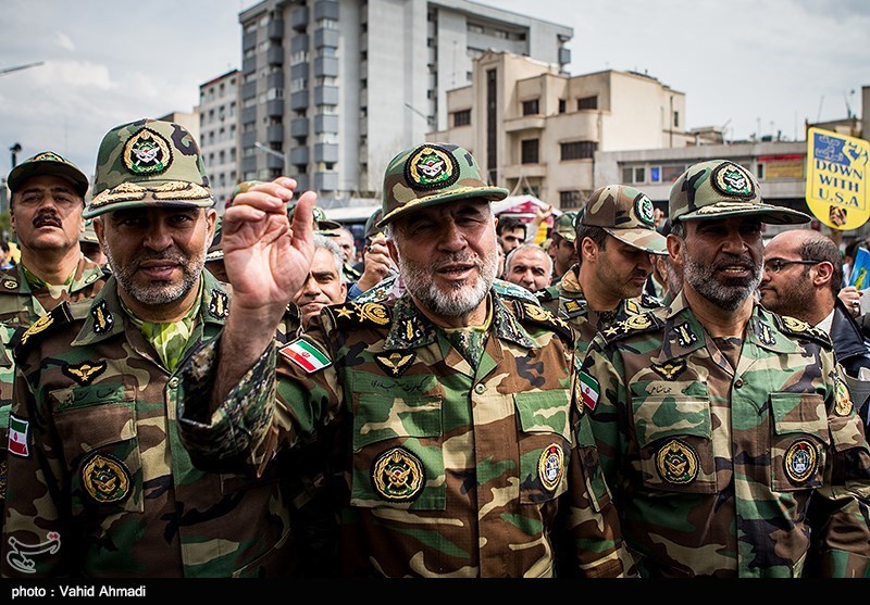 حضور امیر حیدری فرمانده نیروی زمینی و امیر جهانشاهی معاون هماهنگکننده نیروی زمینی ارتش در راهپیمایی حمایت از سپاه