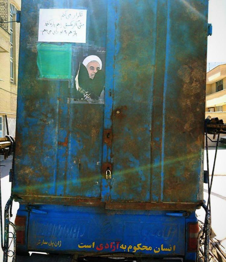 به گزارش خبرنگار سیاسی سایت خبرفوری دستنوشته یک راننده وانت در حالی حمایت خود را از حسن روحانی اعلام کرده است که عدهای عکس روحانی بر روی خودرو وی را پاره کردند.