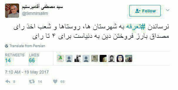 مصطفی میرسلیم در صفحه توییتری خودش نوشت: نرساندن تعرفه به شهرستان ها، روستاها و شعب اخذ رای مصداق بارز فروختن دین به دنیاست برای 4 تا رای.