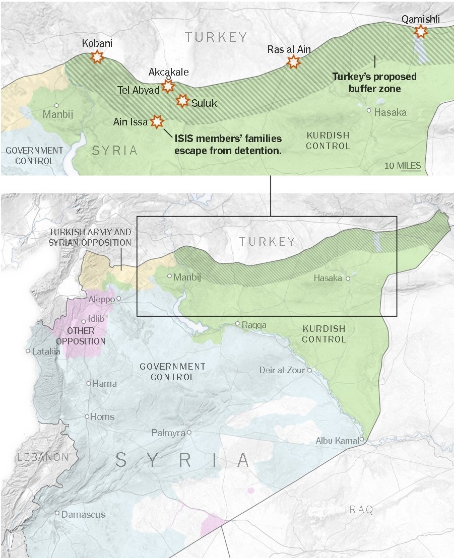 حمله ترکیه به سوریه، صلح شکننده ای را که در شمال شرقی سوریه برقرار شده بود از بین برد و خطر ظهور مجدد داعش در منطقه را به همراه دارد.هر چند که داعش دیگر هیچ منطقه ای را در سوریه در اختیار ندارد اما همچنان از طرفداران و شبکه های پنهان (sleeper cells) درسوریه برخوردار است.