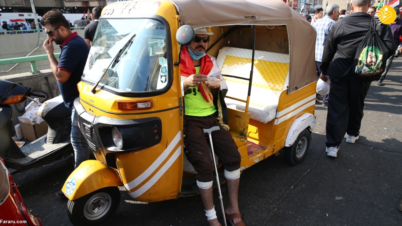 جولان «توک توکها» به جای آمبولانس در اعتراضات مردم عراق+ عکس