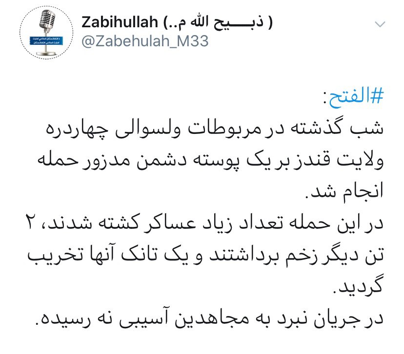 سخنگوی طالبان افغانستان با انتشار پستی در صفحه توییتر خود از کشته شدن «تعداد زیادی» از نیروهای نظامی آمریکا در جریان حمله شب گذشته نیروهای طالبان به نیروهای آمریکایی خبر داد.