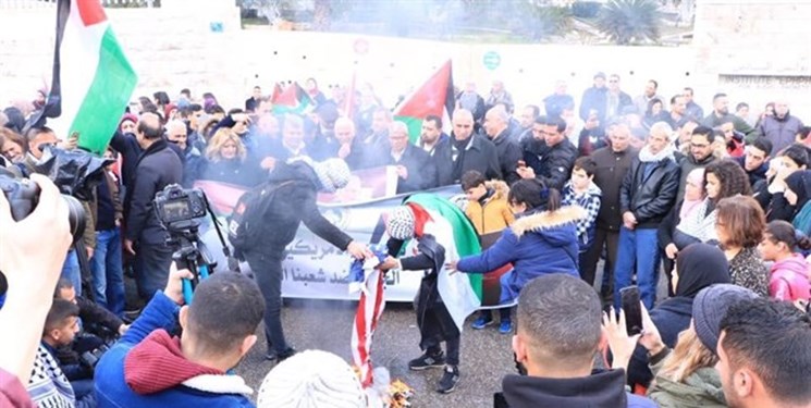 مردم ساکن شهرهای مختلف کرانه باختری در رد «معامله قرن» دست به تظاهرات زدند و نظامیان صهیونیستی سعی کردند با گلوله پلاستیکی و گاز اشکآور معترضان را متفرق کنند.
