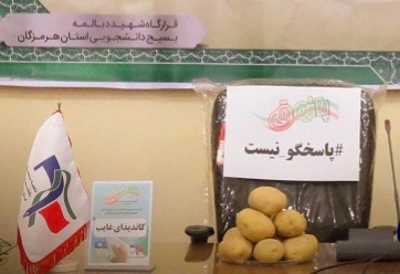 در مناظره‌ای که در دانشگاه بین‌الملل امام خمینی‌(ره) قزوین برگزار شد دانشجویان به جای کاندیداهایی که حاضر به مناظره نشدند سیب‌زمینی گذاشتند!