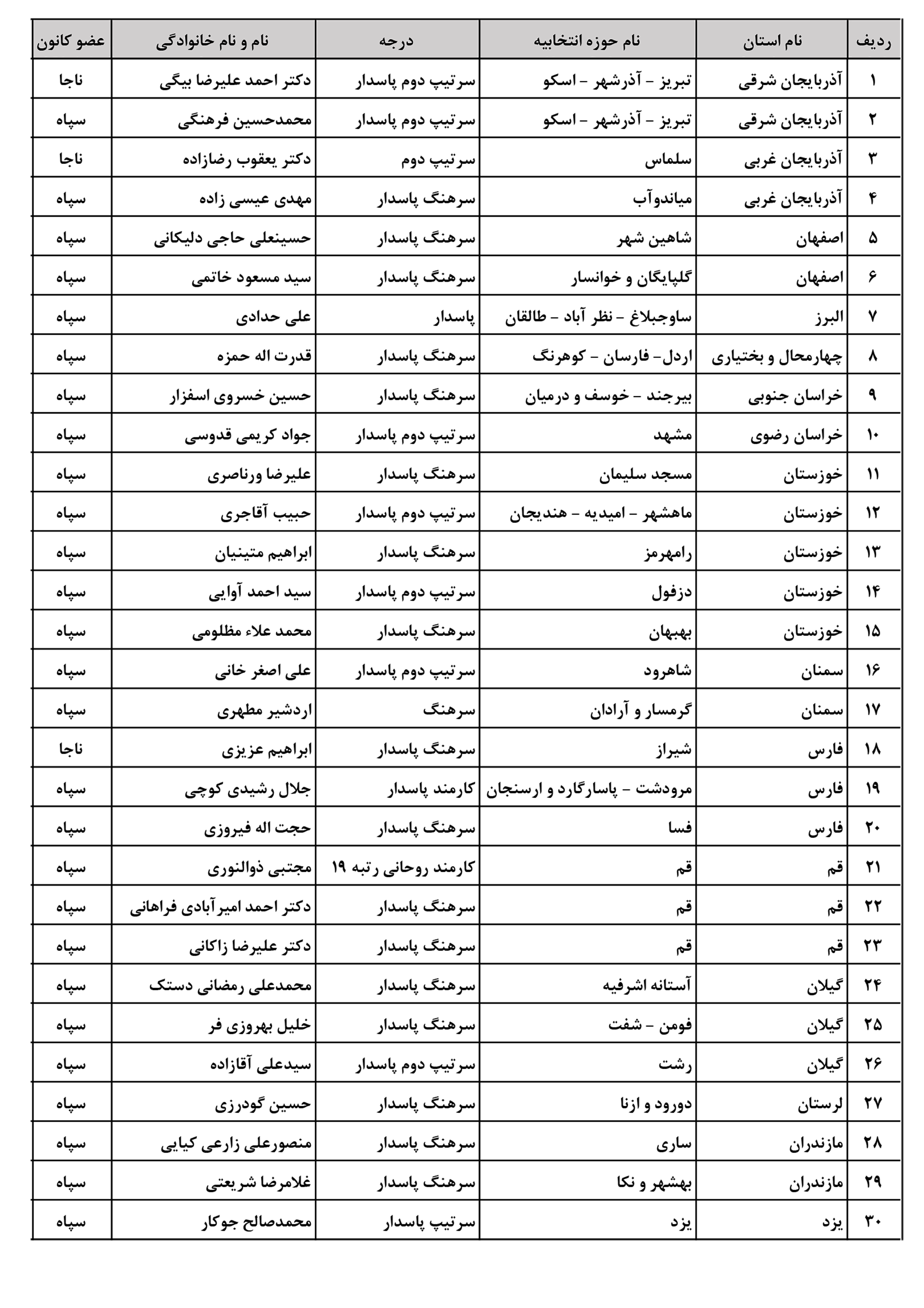 فهرست بازنشستگان نیروهای مسلح راه یافته به دورۀ یازدهم مجلس شورای اسلامی منتشر شد.