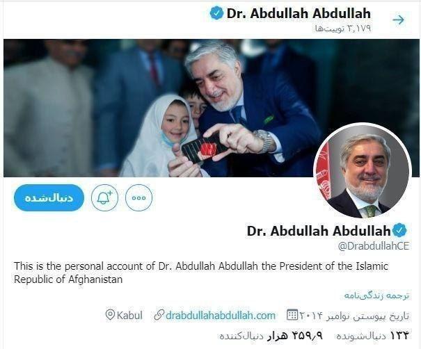 عبدالله عبدالله، رقیب انتخاباتی محمد اشرف غنی حساب توییتری رسمی خود را به رئیسجمهور افغانستان تغییر داد.