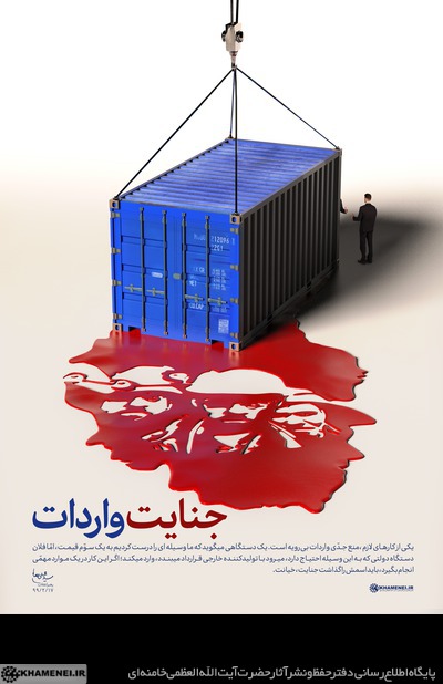 حضرت آیتالله خامنهای: «یکی از کارهای لازم ،منع جدّی واردات بیرویه است. یک دستگاهی میگوید که ما وسیلهای را درست کردیم به یک سوّم قیمت، امّا فلان دستگاه دولتی که به این وسیله احتیاج دارد، میرود با تولیدکننده خارجی قرارداد میبندد، وارد میکند؛ اگر این کار در یک موارد مهمّی انجام بگیرد، باید اسمش را گذاشت جنایت، خیانت.» ۱۳۹۹/۲/۱۷