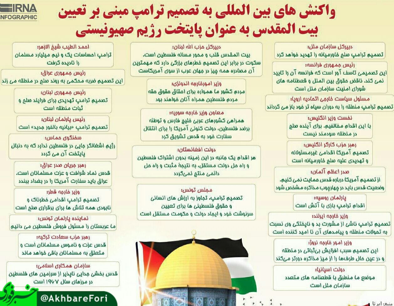 واکنش های بین المللی به تصمیم ترامپ مبنی بر تعیین بیت المقدس به عنوان پایتخت رژیم صهیونیستی را در زیر ببینید: