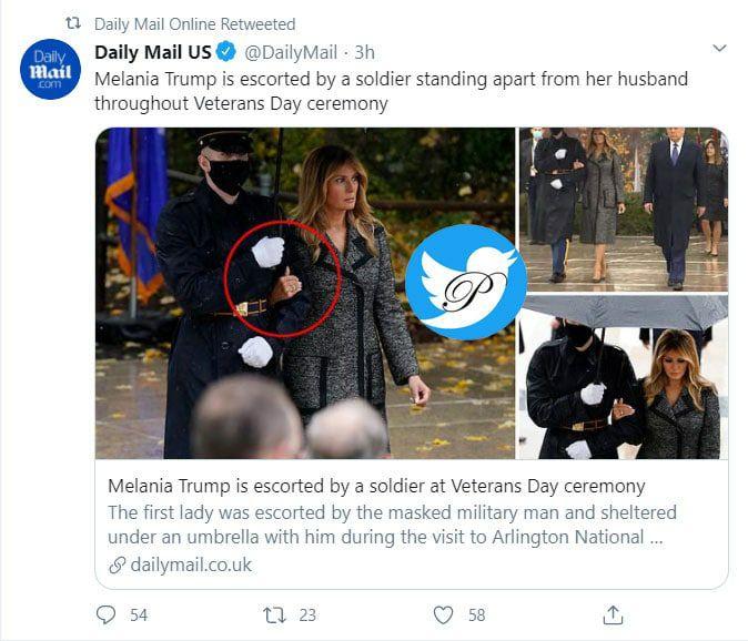 ملانیا ترامپ دیروز در خلال مراسم یادبود کهنه سربازان جنگ، دست در دست یک سرباز حضور یافت و به شایعات درباره خود و دونالد دامن زد.