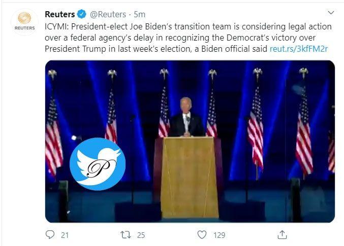 رویترز نوشت: تیم جو بایدن قصد شکایت رسمی از نهاد فدرال به دلیل عدم اعلام پیروزی وی در انتخابات ریاست جمهوری را دارد.