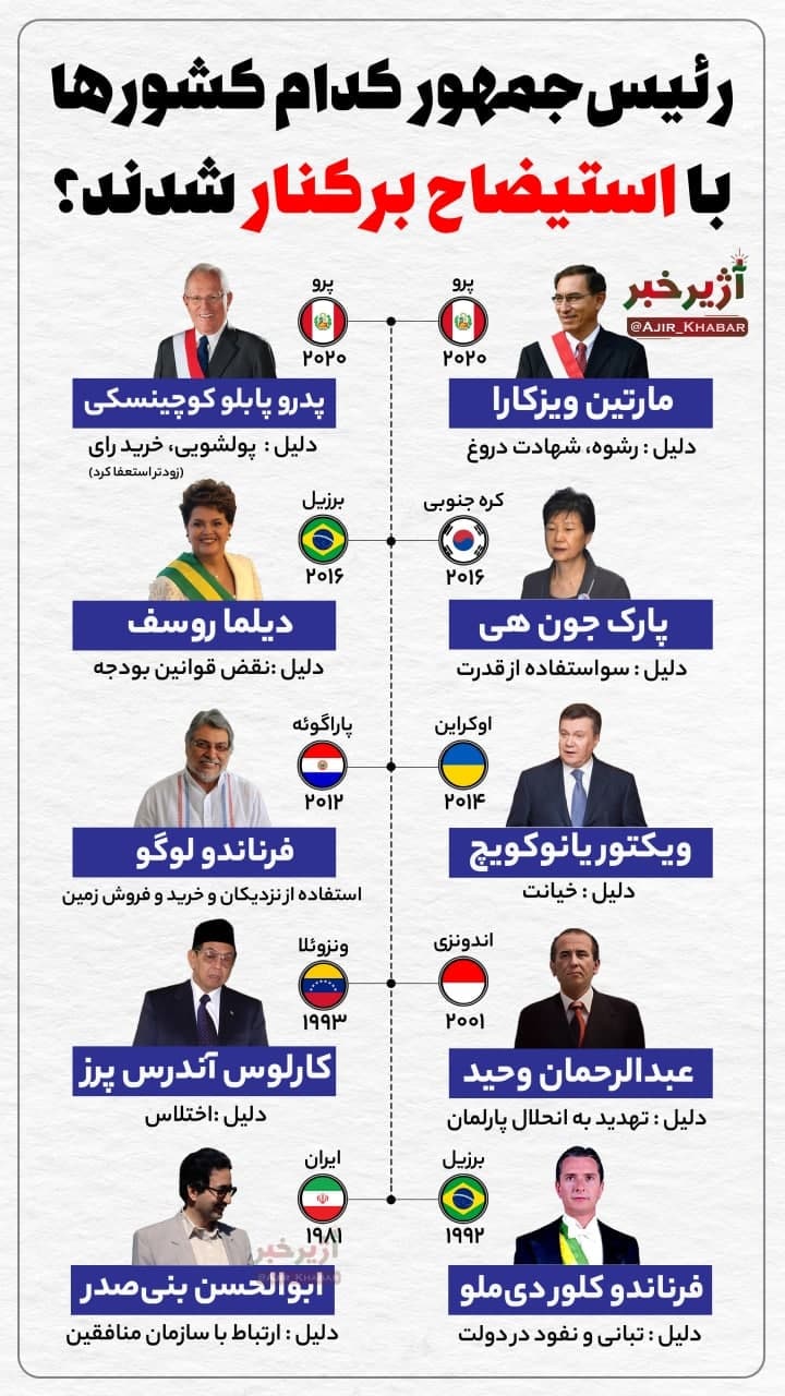 رئیس جمهور کدام کشورها با استیضاح برکنار شدند؟/ اینفوگرافی