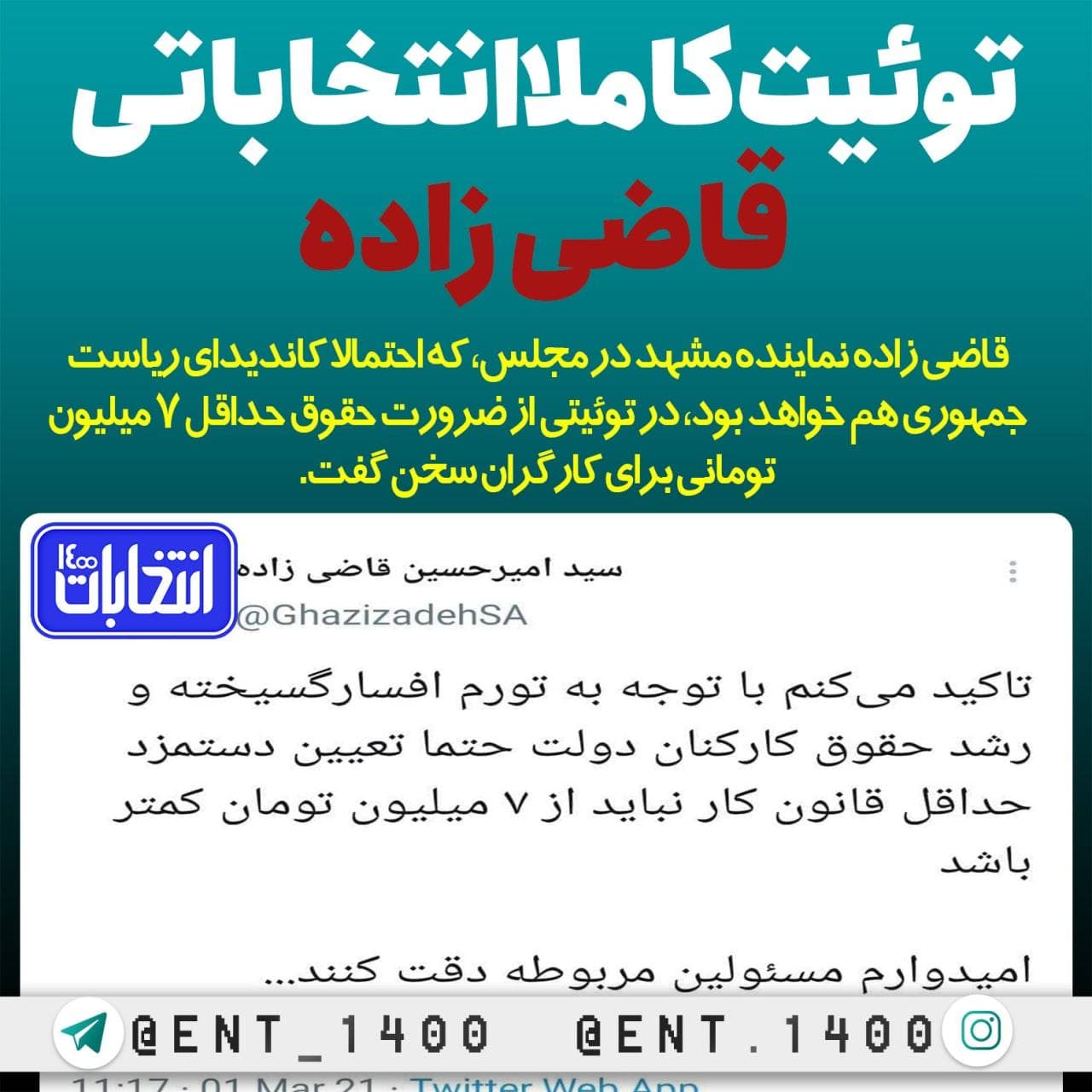 توئیت کاملاً انتخاباتی قاضی‌زاده