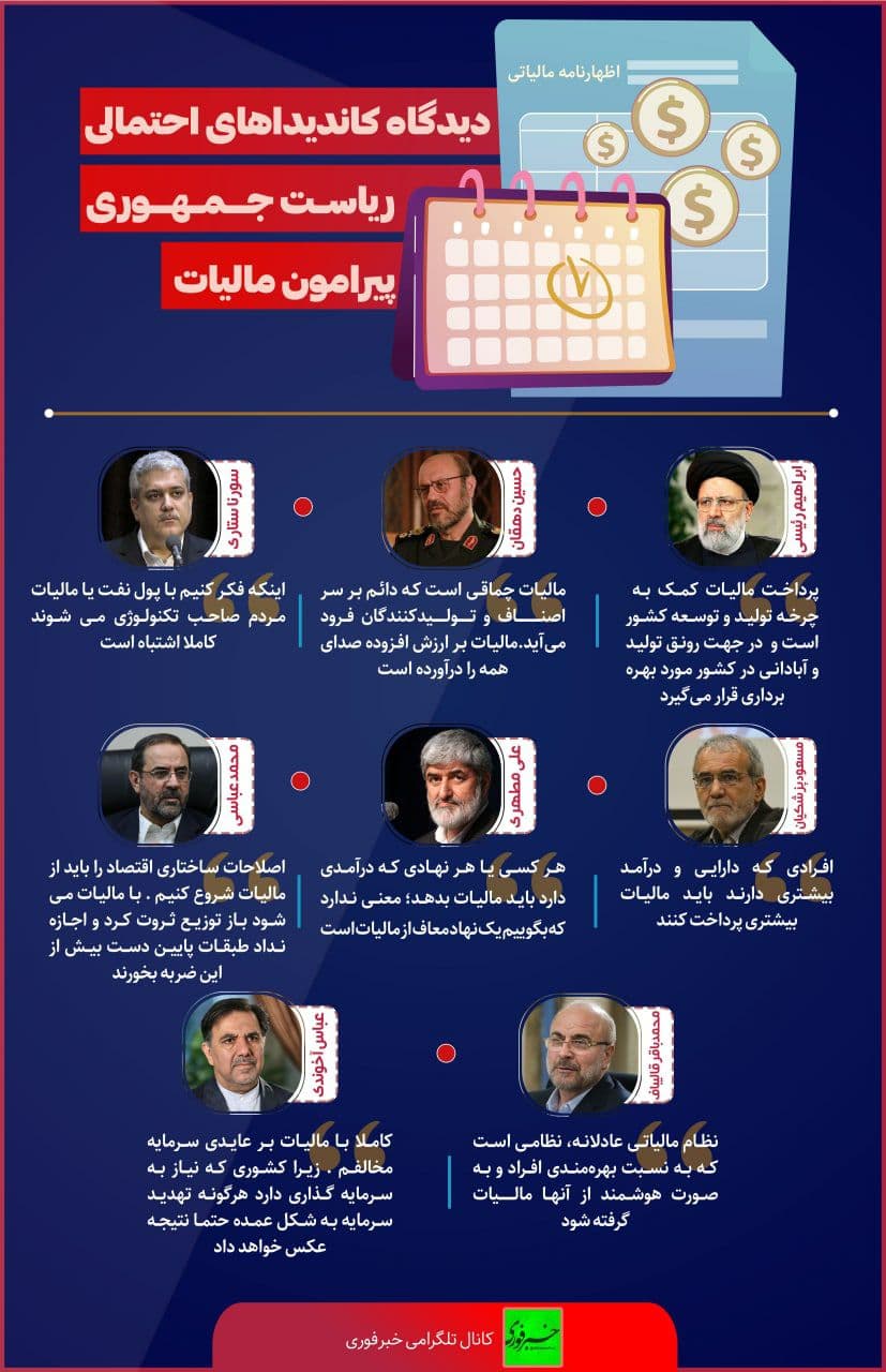 دیدگاه کاندیداهای احتمالی انتخابات ریاست جمهوری پیرامون مالیات/ اینفوگرافی