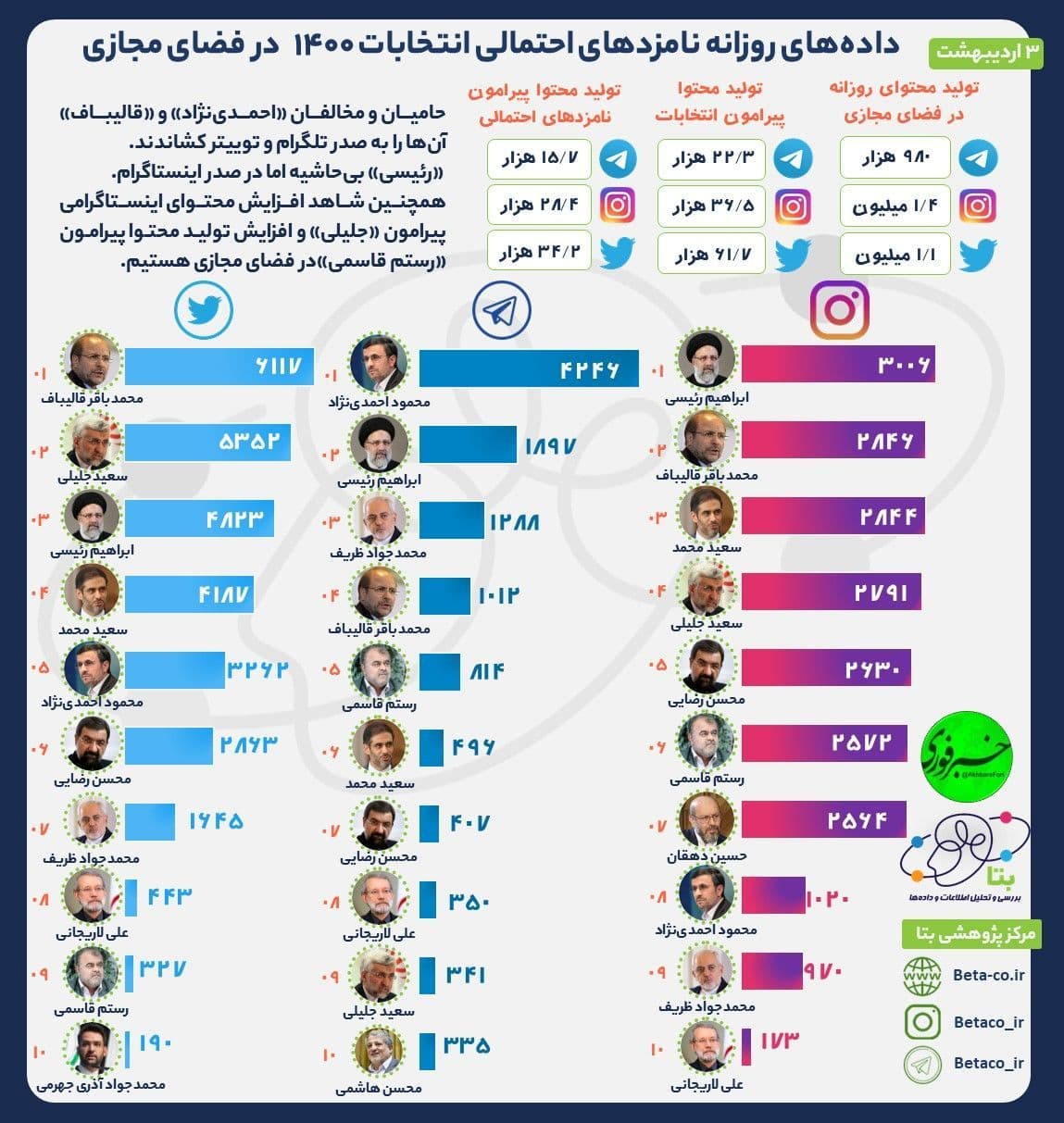محتوای انتخاباتی فضای مجازی در ۳ اردیبهشت/ اینفوگرافی