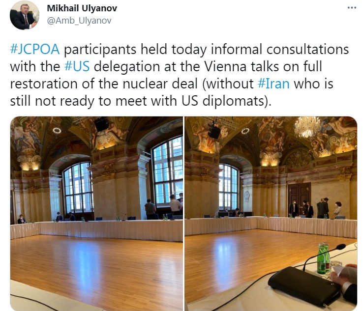 «میخائیل اولیانوف» نماینده روسیه در سازمانهای بینالمللی مستقر در وین از گفتوگوی غیر رسمی میان هیأتهای کشورهای عضو برجام بجز ایران با هیأت آمریکایی در وین خبر داد.