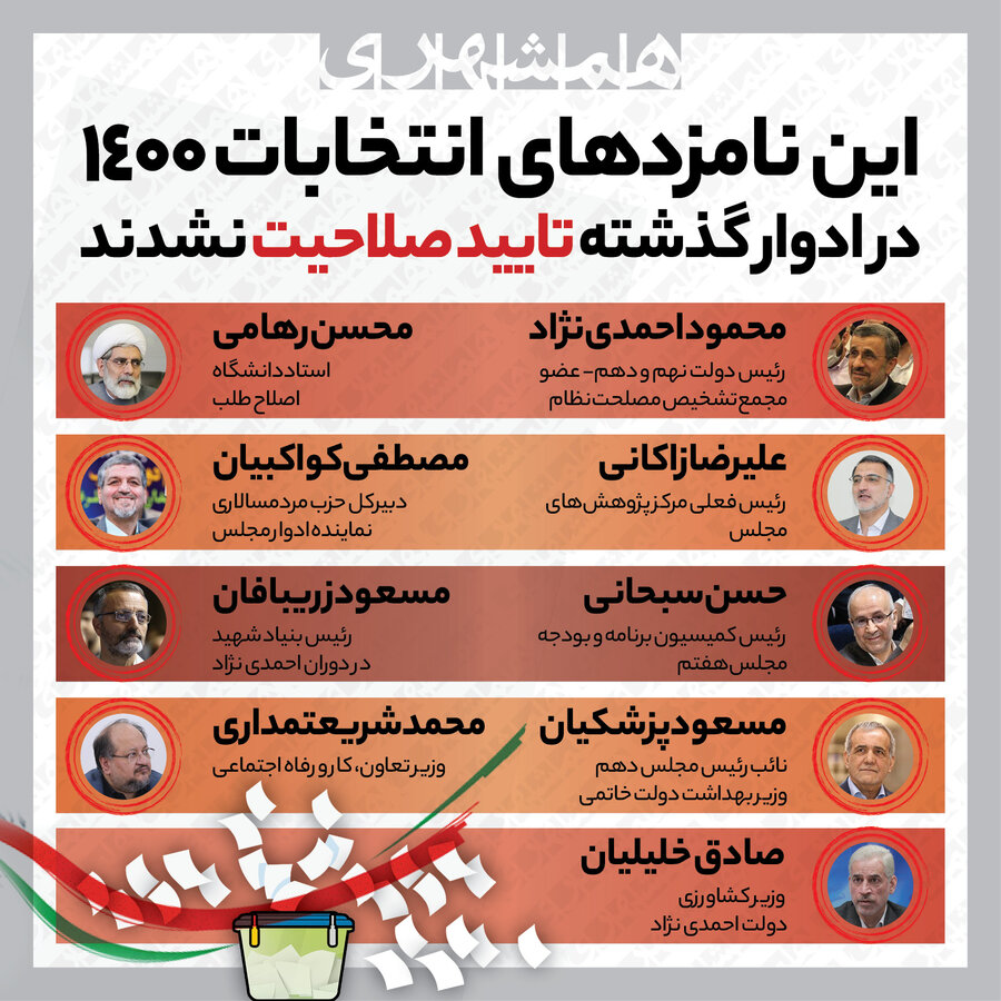 معروفترین نامزدهای انتخابات ۱۴۰۰ که در گذشته رد صلاحیت شده اند/ اینفوگرافی