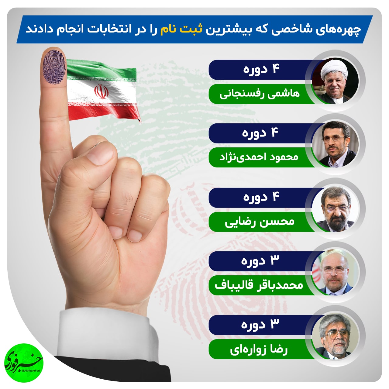 مرحوم هاشمی رفسنجانی، محمود احمدینژاد و محسن رضایی از چهرههای شاخص سیاسی هستند که تا کنون ۴ بار در انتخابات ریاست جمهوری نامزد شده اند.