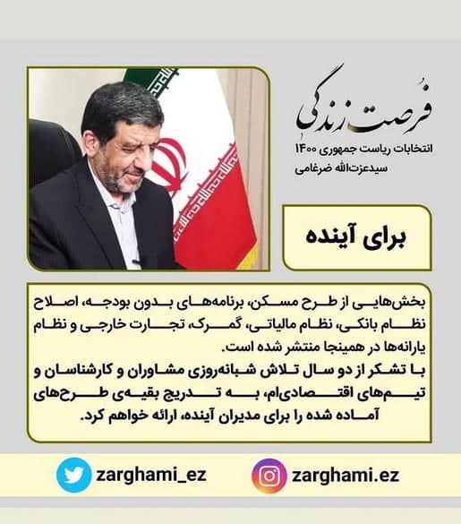 داوطلب نامزدی انتخابات ریاستجمهوری ۱۴۰۰ در اینستاگرام خود نوشت که به انتشار طرحهای اقتصادی برای مدیران آینده ادامه خواهد داد.