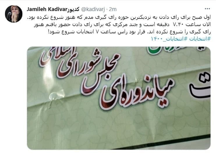نماینده مجلس ششم و همسر عطاءالله مهاجرانی درباره حضورش در رأی گیری انتخابات ۱۴۰۰ و تأخیر در فرآیند آغاز این فرآیند، توئیتی منتشر کرد.