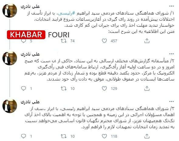 درخواست نامزدها برای تمدید زمان رای گیری انتخابات تا ساعت ۲ بامداد