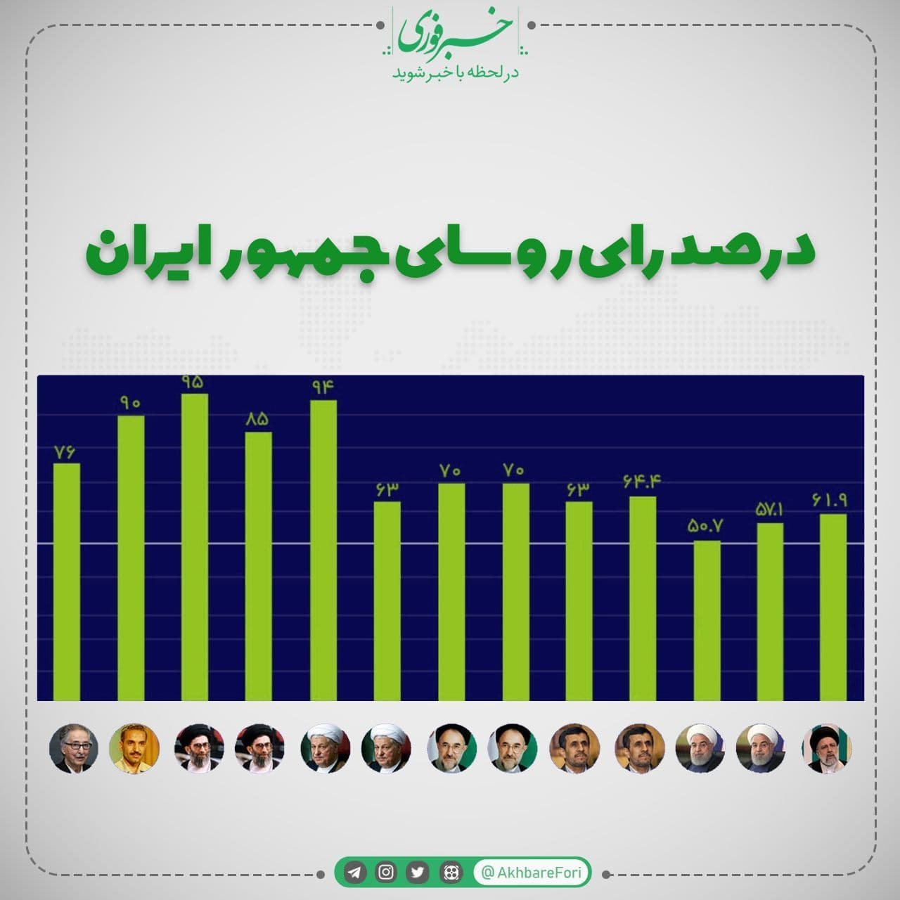 در این ۳ اینفوگرافی، درصد رأی رؤسای جمهور ایران، درصد آراء واجدین شرایط و نرخ مشارکت در دوره های مختلف انتخابات ریاست جمهوری مشخص شده است.