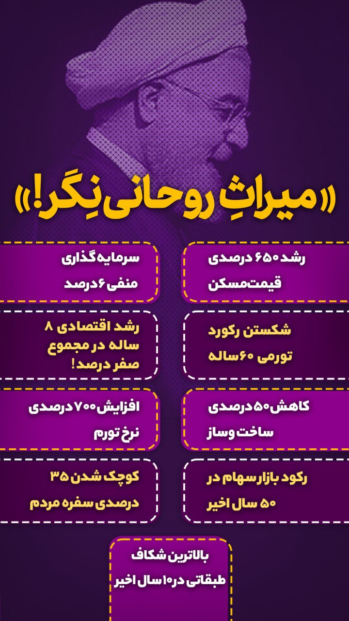 میراث روحانی در این هشت سال به بدبختی کشیدن من و خانواده ام بود خدا خیرت نده البته اگه خدا را بشناسی. ای مار هفت سر