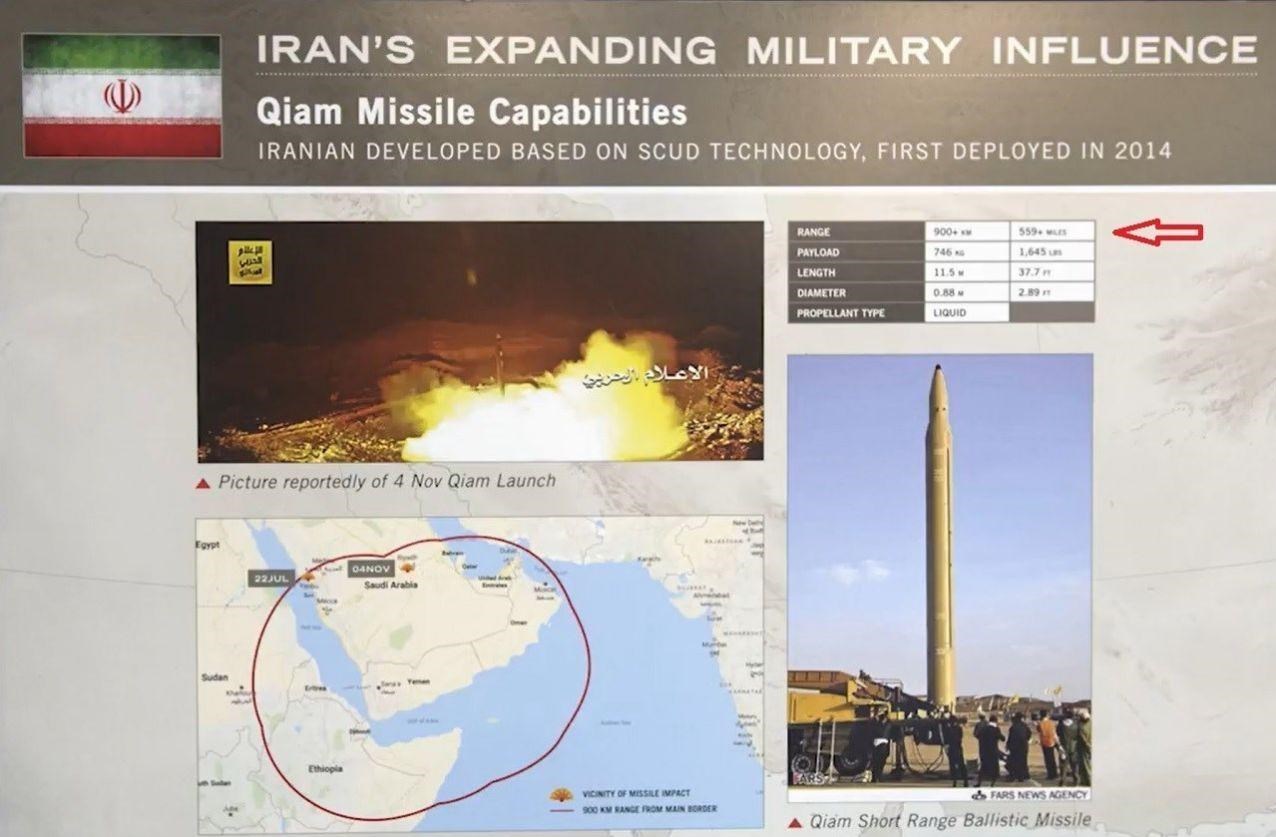 تصویری که نتانیاهو نمایش می دهد، در واقع سه فروند موشک قدر اف، قیام و شهاب 3 است و بالای هر موشک به طور جداگانه نام و برد آن موشک نوشته شده است.