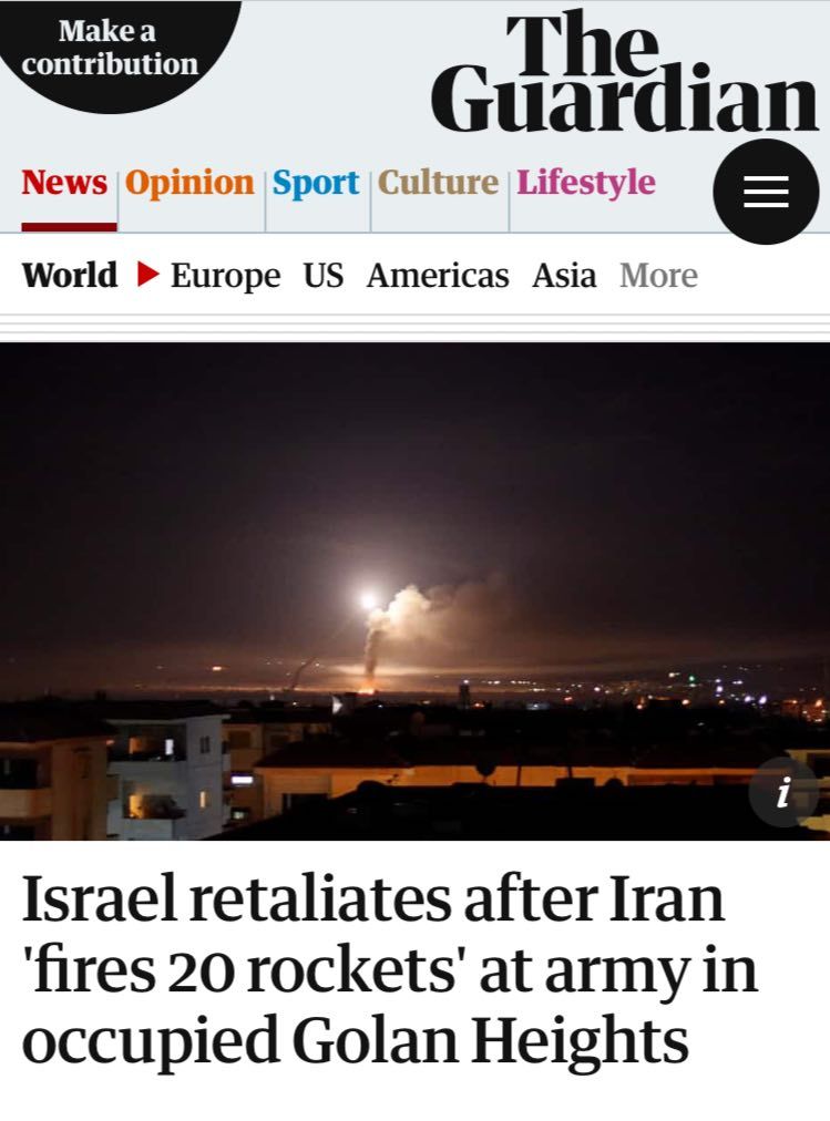 در حالی که دمشق در حال پاسخ به تجاوزات اسرائیل است گاردین در واکنش به انفجارهای امروز اسرائیل نوشت: اگر خبر درست باشد و ایران به اسرائیل حمله موشکی کرده باشد، این اولین جنگ بدون واسطه بین ایران و اسرائیل خواهد بود.