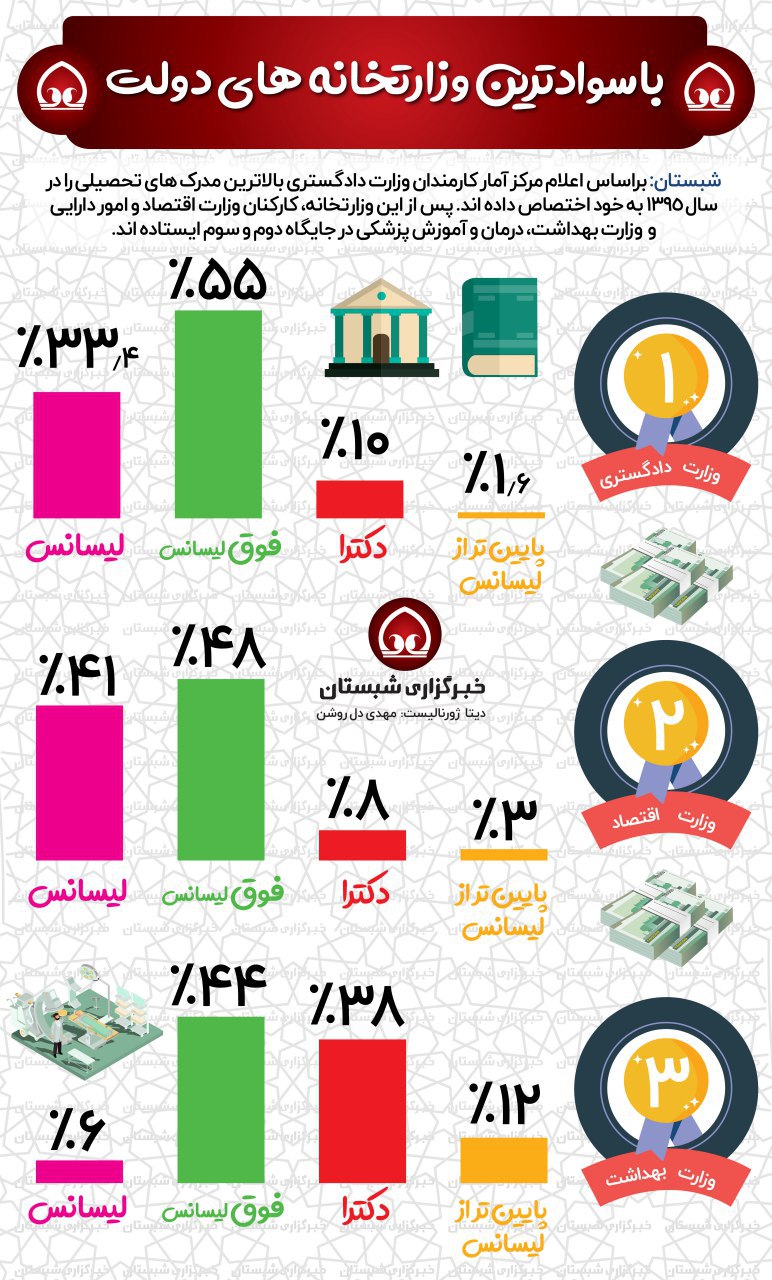 اینفوگرافیک/ باسوادترین وزارتخانه های دولت کدامند؟