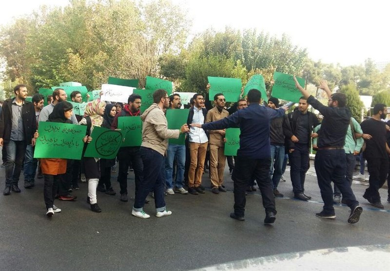 تجمع دانشجویان حامی روحانی علیه روحانی در دانشگاه تهران + عکس