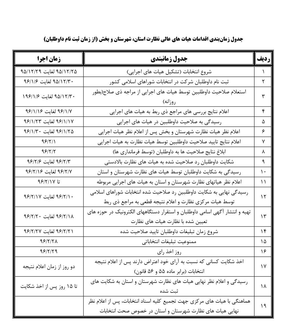 جدول زمانبندی پنجمین دوره انتخابات شوراهای شهر و روستا