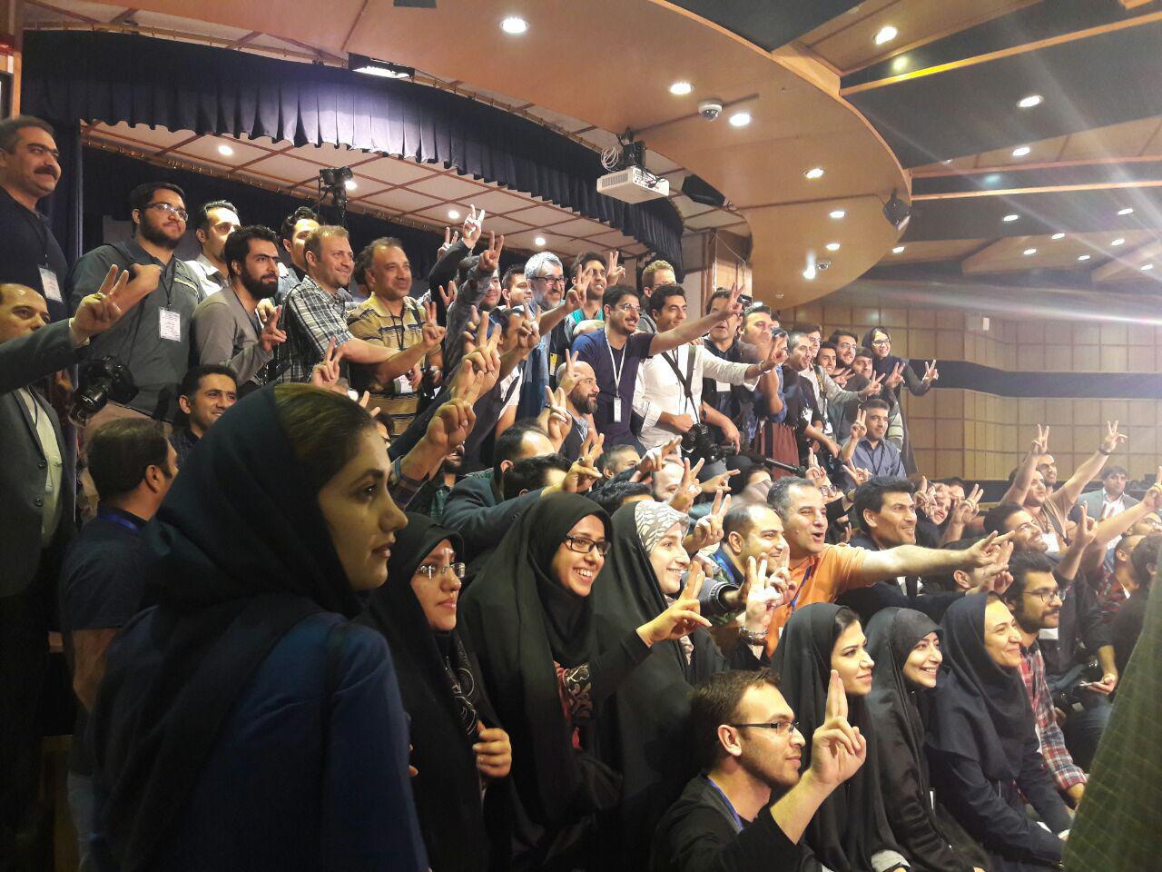 جمعي از عكاسان و خبرنگاران حاضر در وزارت كشور دقايقي پيش روي جايگاه سالن وزارت كشور قرار گرفتند و در حالی که سلفي به يادگار انداختند، دست خود را بالا مي گرفتند و به سبك برنامه خندوانه مي گفتند" بريم بيام"