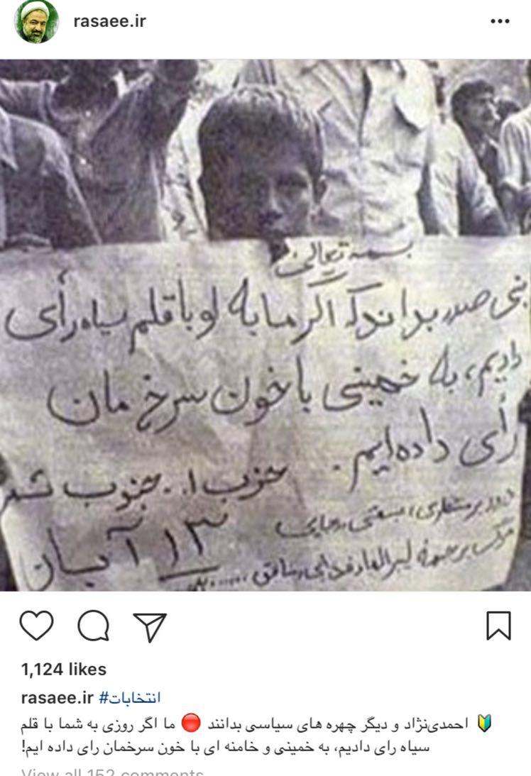 رسایی به ثبت نام احمدی نژاد در انتخابات ۹۶ واکنش نشان داد و یکی از پست هایی که این روزها در فضای مجازی دست به دست می شود را در صفحه شخصی خودش گذاشته است. پستی که به زعم عده ای، ساخته دست معاندین نظام است و جهت سیاه نمایی و دلزدگی سیاسی مردم نشر داده می شود.
