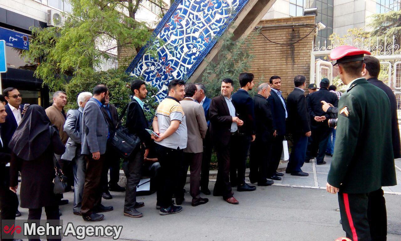 ازدحام افراد برای ثبت نام در انتخابات ریاست جمهوری جلوی ساختمان وزارت کشور در ساعات اولیه روز سوم.