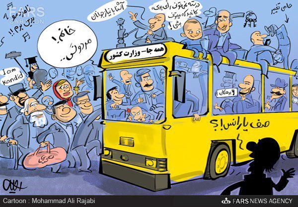 طراحی کاریکاتوری از وضعیت حضور افراد مختلف در وزارت کشور به نام "ثبت نام از شیفتگان خدمت!"